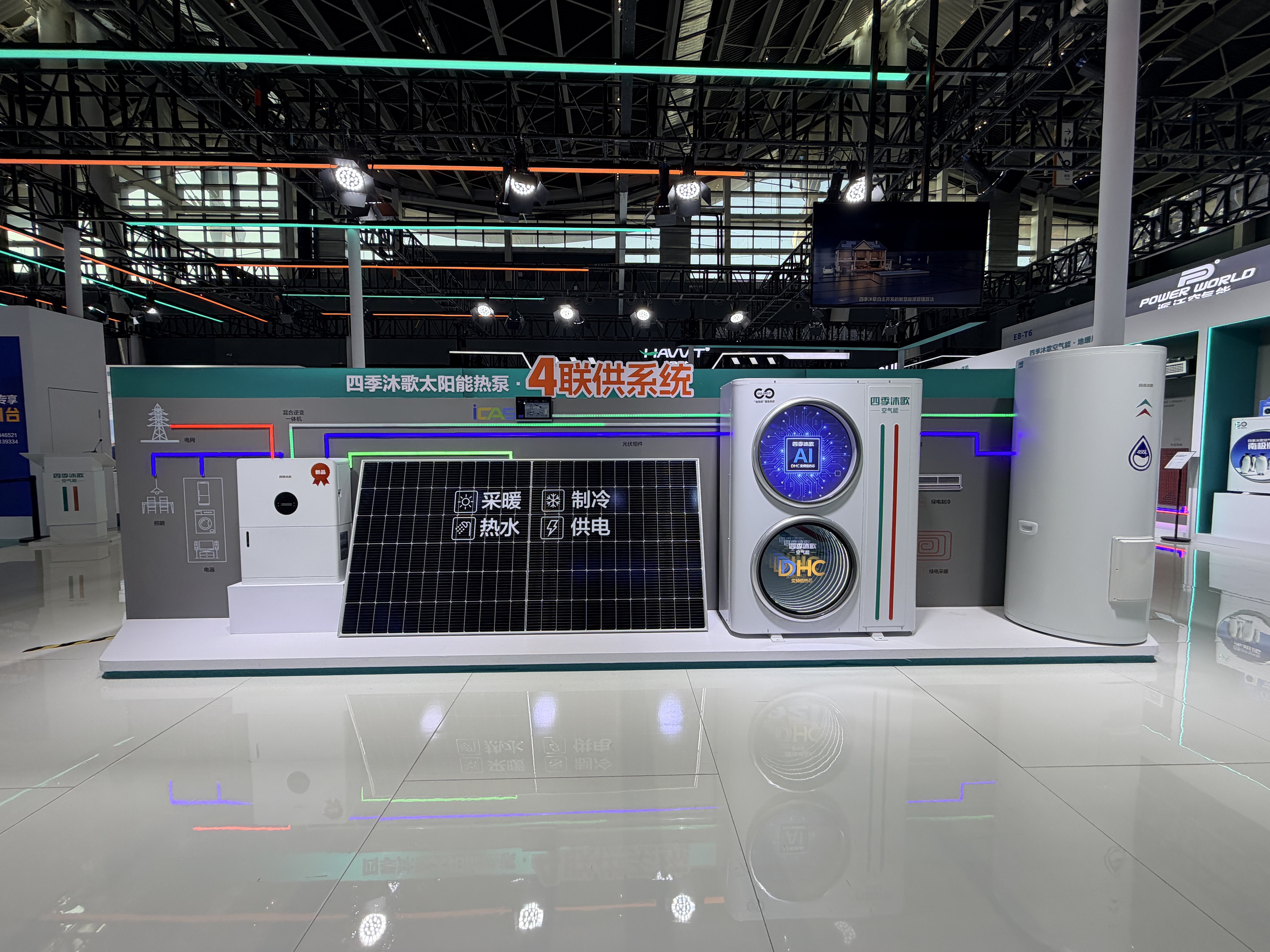 展会现场,四季沐歌集中亮相多款核心产品与解决方案:家用领域重磅推出空气能原装集成冷暖机、太阳能热泵采暖热水一体机、轻商热水站、家庭中央热水系统等新品;商用领域重点展示零碳园区智慧能源解决方案、太阳能热泵商用热水站等核心方案,全面呈现品牌在清洁能源领域的技术实力与产品矩阵。一众 “明星新品” 和创新技术一经亮相,便吸引了在场观众的诸多好评。而从家庭住宅的智慧能源科学组合利用到公共建筑的低碳样板,再到社区、园区的综合能源解决方案,四季沐歌将太阳能、空气能等清洁能源技术无缝融入各大应用领域,呈现出一幅热泵科技关切民生福祉、生态效益与经济效益协同发展的清洁能源美好图景。
